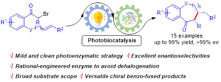 饶义剑教授团队在生物合成苯并氧杂环化合物方面取得重要进展,研究成果“Photoenzymatic Enantioselective Synthesis of Oxygen-Containing Benzo-Fused Heterocycles”在线发表于Angewandte Chemie International Edition (IF = 16.6) (//doi.org/10.1002/ange.202311762)。