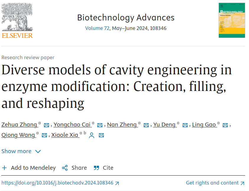 夏小乐教授团队对酶改造过程中空腔工程化的几种模式进行了全面讨论,相关综述文章“Diverse models of cavity engineering in enzyme modification: Creation, filling, and reshaping”正式发表于Biotechnology Advances(一区TOP期刊,IF=16.0)。(//doi.org/10.1016/j.biotechadv.2024.108346)