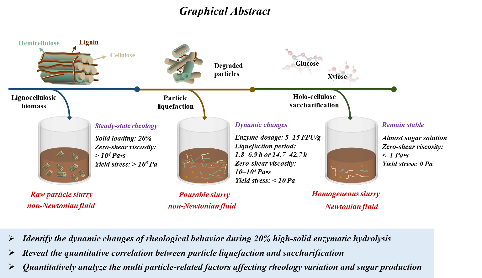 孙付保教授团队在木质纤维素生物质浓醪酶解糖化方面取得重要进展,研究成果“Quantitative correlation analysis between particle liquefaction and saccharification through dynamic changes of slurry rheological behavior and particle characteristics during high-solid enzymatic hydrolysis of sugarcane bagasse”正式发表于Bioresource Technology (IF = 11.3997) (//doi.org/10.1016/j.biortech.2024.130518)。