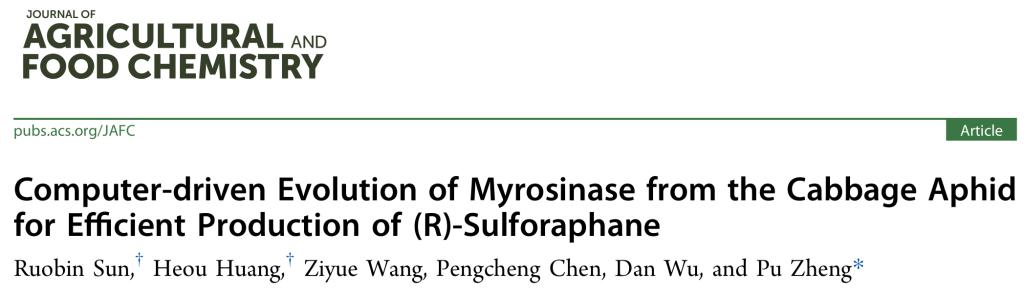 郑璞教授团队在计算机驱动甘蓝蚜虫黑芥子酶的进化以高效生产(R)-萝卜硫素方面取得进展,研究成果“Computer-driven Evolution of Myrosinase from the Cabbage Aphid for Efficient Production of (R)-Sulforaphane”发表于Journal of Agricultural and Food Chemistry期刊(一区、Top期刊,IF=6.1)(//doi.org/10.1021/acs.jafc.4c02064)。