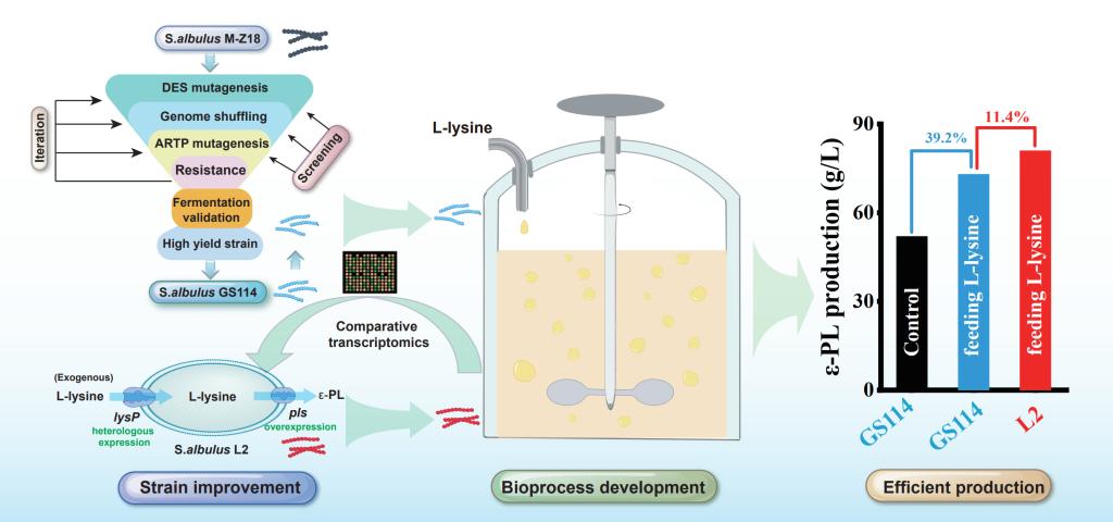 张建华研究员团队陈旭升教授课题组在ε-聚赖氨酸高效生产方面取得重要进展,研究成果“Combinatorial strain improvement and bioprocess development for efficient production of ε-poly-L-lysine in Streptomyces albulus”正式发表于Bioresource Technology (IF = 9.7) (//doi.org/10.1016/j.biortech.2024.131123)。