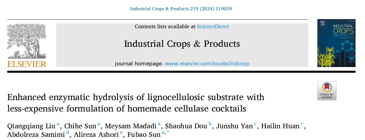 生物资源与生物炼制研究团队在木质纤维素生物质酶法水解产糖方面取得重要进展,研究成果“Enhanced enzymatic hydrolysis of lignocellulosic substrate with less-expensive formulation of homemade cellulase cocktails”正式发表于Industrial Crops & Products(一区, Top, IF 5.6)。