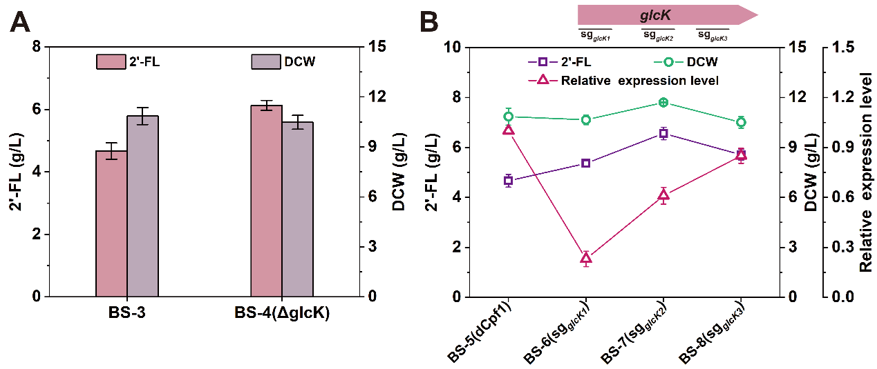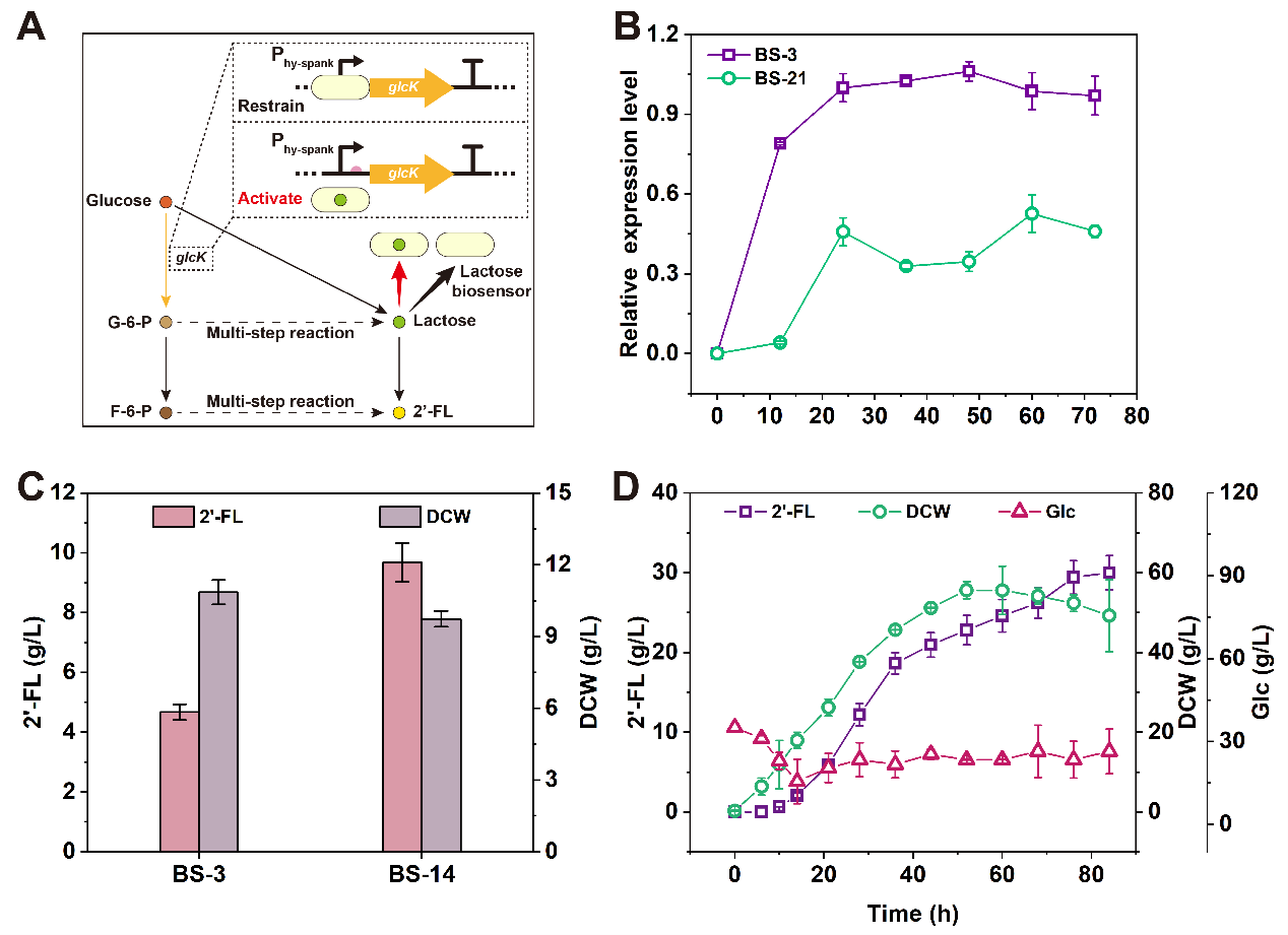 图2 以葡萄糖为唯一碳源合成乳糖和2¢-FL
