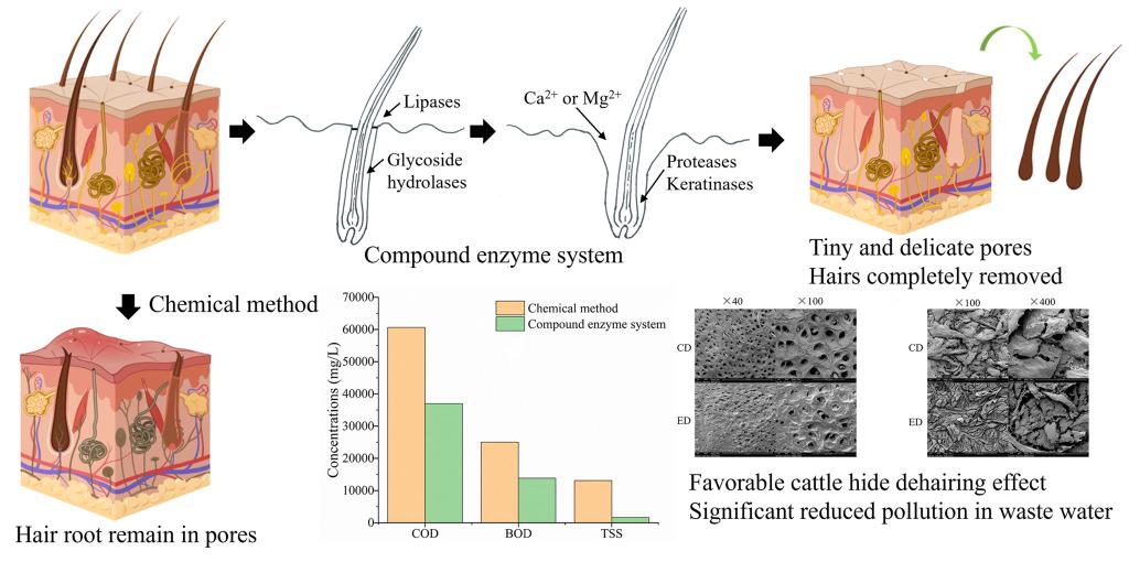 李崎教授团队在皮革环保脱毛方面取得重要进展,研究成果“Significant alleviation of water pollution in leather dehairing through the construction and application of an eco-friendly compound enzyme system”正式发表于Journal of Environmental Chemical Engineering (IF = 7.4) (//doi.org/10.1016/j.jece.2025.115520)。