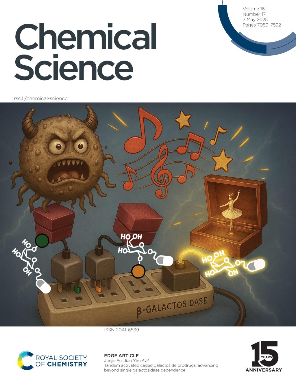 、糖化学与生物技术教育部重点实验室尹健教授团队在新型糖苷类前药研究方面取得新进展,研究成果“Tandem activated caged galactoside prodrugs: advancing beyond single galactosidase dependence”发表于英国皇家化学会(RSC)旗舰期刊Chemical Science(Chem Sci 2025, 16, 7173, DOI: 10.1039/D5SC00722D),并被选为内封面文章。