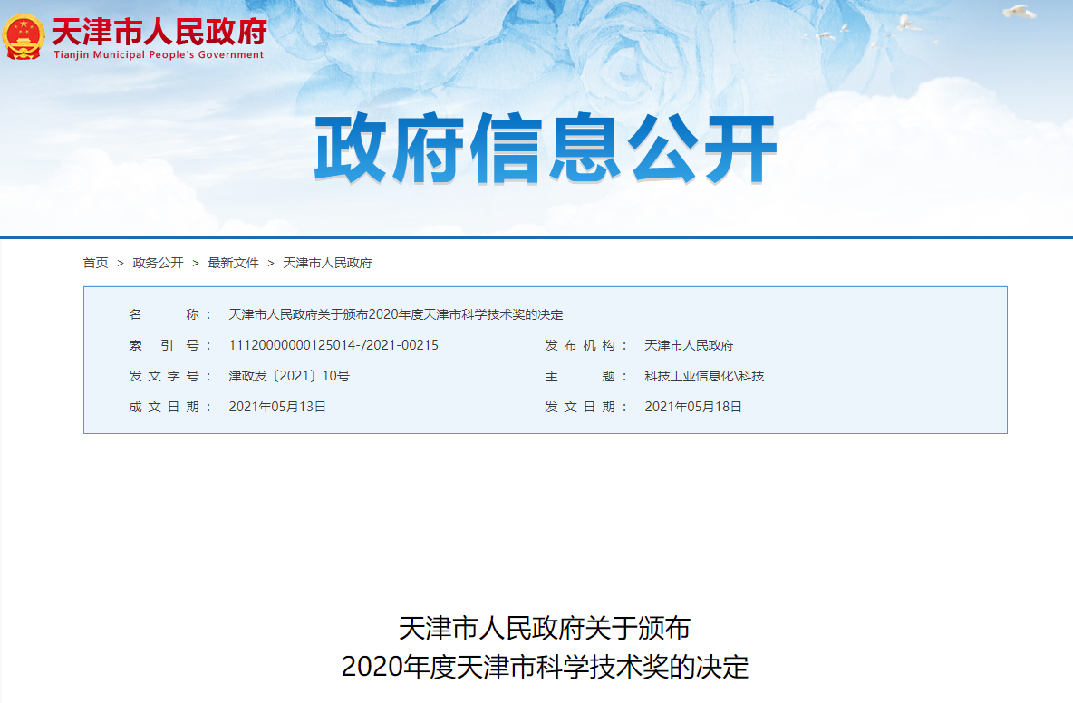5月18日,天津市人民政府正式发文颁布了2020年度天津市科学技术奖的决定。91热爆