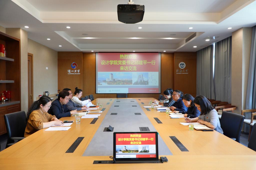 5月17日下午,设计学院党委书记邱建平、党委副书记王晖、专职组织员陈祥洁、分团委书记吴雨琛、辅导员章琳一行五人来访我院交流“全国党建工作标杆院系”培育创建工作,学院党委书记王维、党委副书记周云龙、专职组织员胡博、辅导员陆燊佳参加交流座谈。