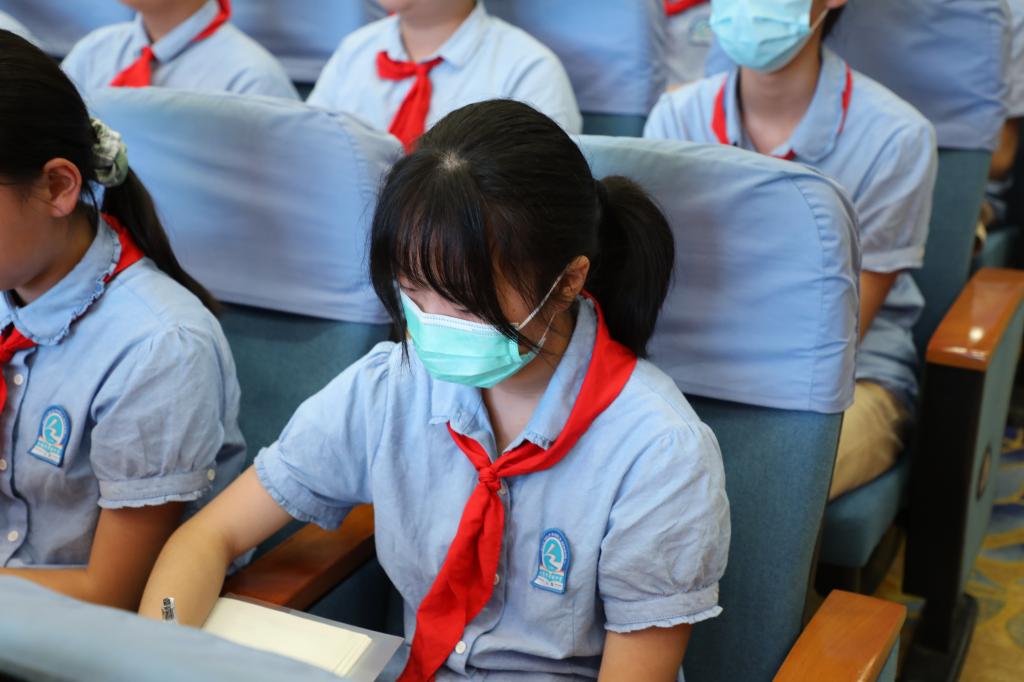 两位青年讲师从国旗的由来讲起,以红领巾是国旗一角的标志意义,表明知党史、懂国情、爱祖国、爱人民的坚定立场;以五星红旗的红色象征革命先烈的鲜血的寓意追溯了抗美援朝战争的伟大故事、历史意义和现象思考,引导青少年们树立正确的历史观、英雄观和奋斗观;通过“跨时空对话”的形式,从无锡人民熟知的荣氏家族的贡献的角度解读了“一化三改”的重大意义,最后勉励同学们不要辜负习近平总书记“希望大家努力在实现中国梦的伟大实践中创造自己的精彩人生”的殷切希望。宣讲内容结合了丰富的无锡本地素材,将爱党、爱国与爱家乡融合,现场气氛活跃,大家热烈互动,极具感染力和实效性。
