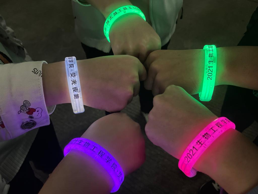 的熟悉度,本次夜跑活动沿途共设5个任务点。夜跑正式开始前,同学们首先进行了热身活动,领取荧光物资后同学们纷纷前往各任务点。健康的定义包括身体健康和心理健康。来到第一个任务点的同学们,通过扫码答题,回答心理小知识获取任务勋章。在第二个任务点,喷泉与荧光的碰撞带给学生们不一样的光影体验,通过相互合作与配合,学生们顺利完成各项任务。百年党史,点点星光。同学们在体育中心任务点通过扫码答题的方式,回顾了中国共产党的百年征程,以期不忘初心,砥砺前行。在热闹的校园里,大家相互鼓励,共同前进。经历了脑力与体力的双重比拼后,同学们回到了91热爆