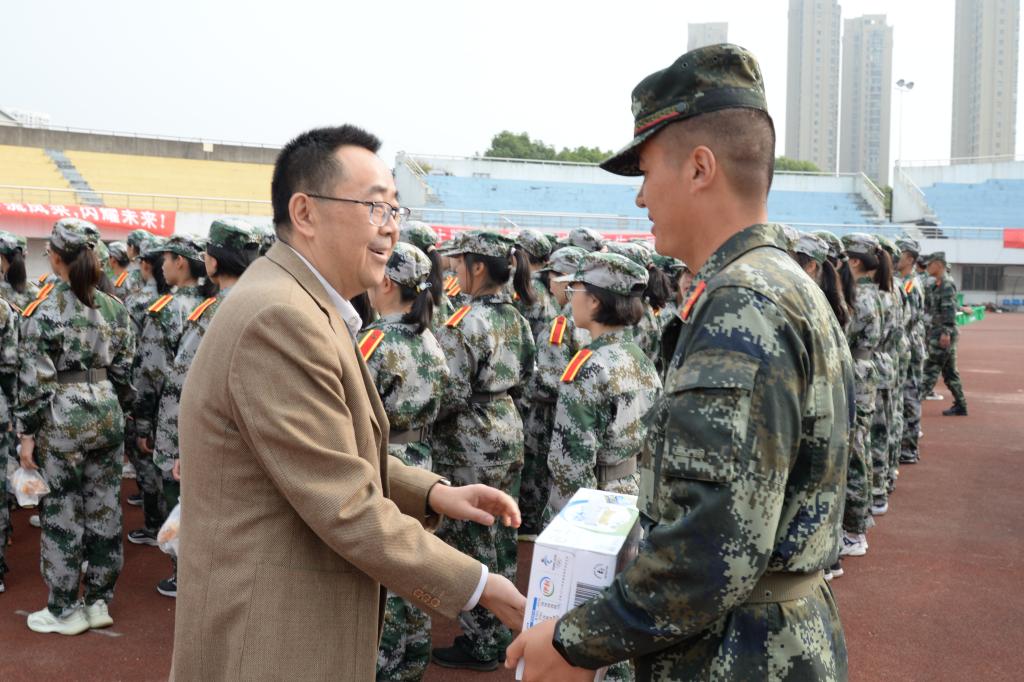 最后,到场的老师们为教官和每位同学送上慰问品。老师们悉心询问同学们的训练状况,对同学们的身体情况表示关心。同学们深切感受到学院领导的关心与挂念。希望同学们在未来的生活中继续发扬不畏艰难、吃苦耐劳、坚持不懈、勇争第一的精神,并在最后几天的训练中持之以恒,以饱满的精神和昂扬的斗志迎接最后的军训汇报表演。