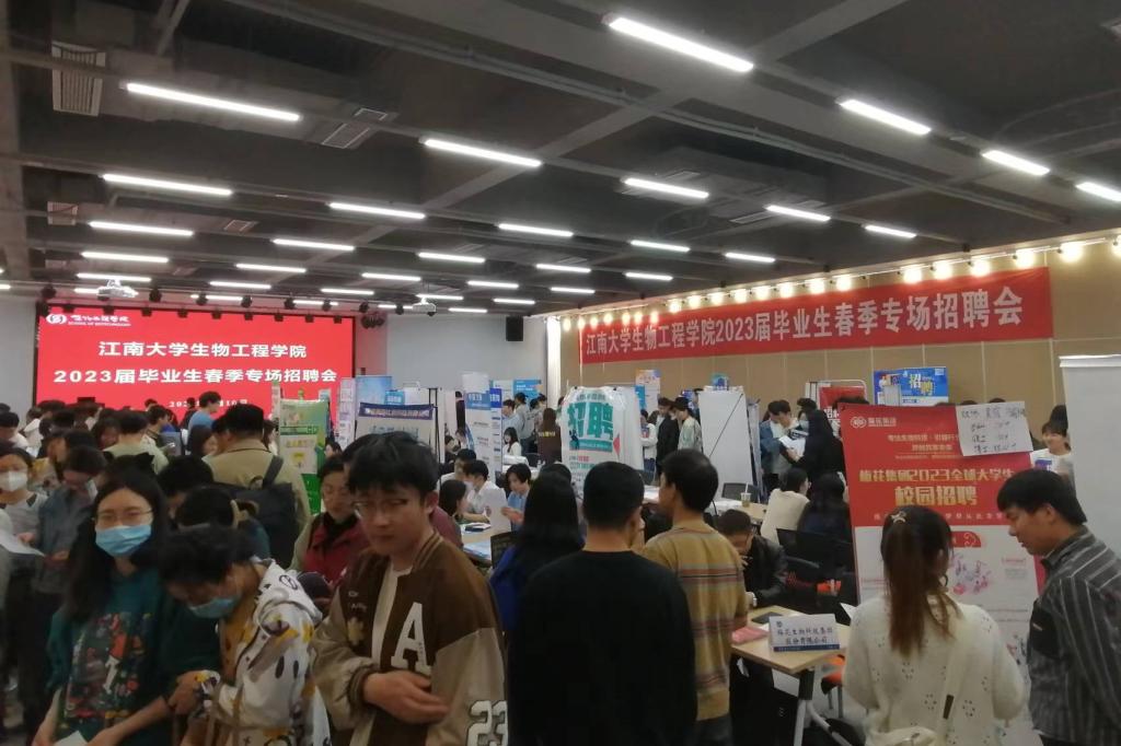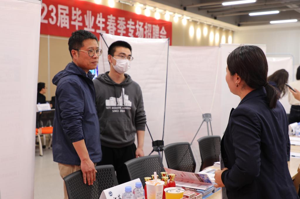 在北区大学生活动中心举办2023届毕业生春季专场招聘会。经用人单位报名、学院筛选,共有65家用人单位参加本次招聘会,其中包括诸多学院理事会单位、行业龙头企业,涉及生物发酵、酿造、食品、医药、化工等行业,提供就业岗位1000个以上。