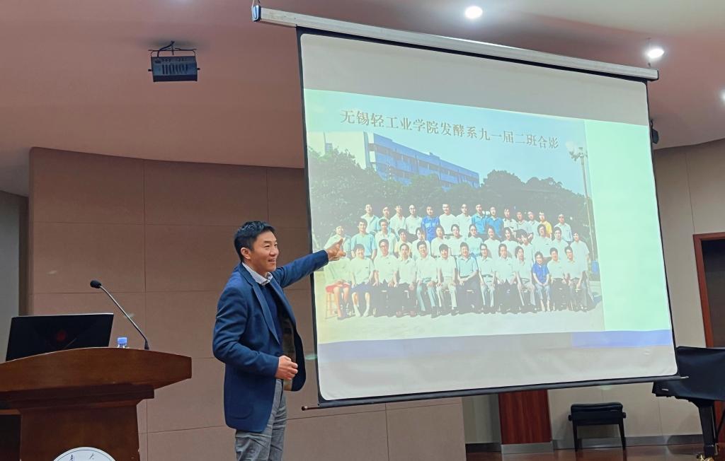 (原发酵系)1987级校友,他向师弟师妹们分享了自己三十多年的学习、工作经验,勉励同学们树立终身学习的观念,大胆探索,勇于尝试,努力实现个人价值,为社会做出贡献。