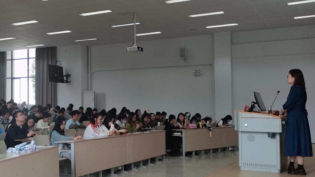 心理健康教育中心咨询师缪可嘉老师主讲,学院辅导员张同舟和硕博新生参加了活动。