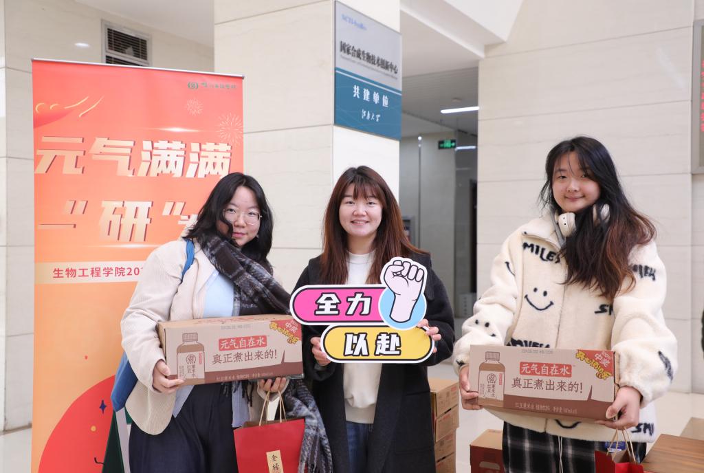 考研学子精心准备了“元气满满加油包”,里面包含考研文具套装、维生素C、祝福卡片和一箱元气森林(气泡水/电解质水等)。每一份礼物都承载着深深的祝福和期待,助力每一个考研学子梦。收到礼物的同学们纷纷表示,学院的关怀让他们备受感动,也更加坚定了他们考研的决心和信心。