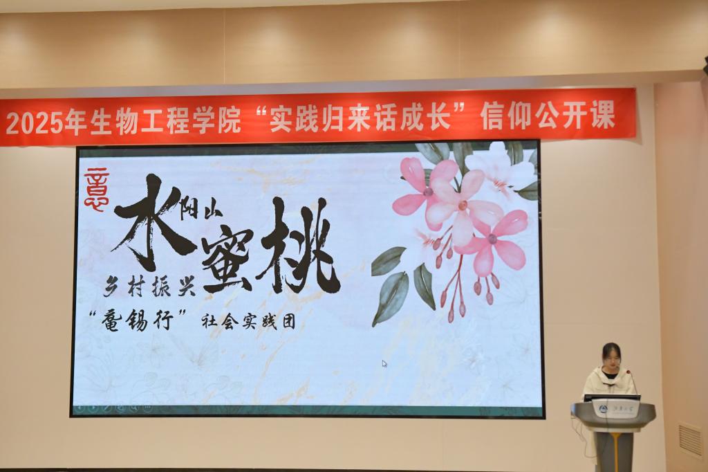 各实践团以纪实影像定格实践足迹,以实干担当践行初心使命,用扎实行动书写了生工学子服务社会发展、赋能产业升级的青春答卷。最后,周春江作总结讲话。他对学院2025年暑期社会实践各团队的精心组织与高效落地给予充分肯定。他强调,社会实践的核心在于借助学科优势,主动思考,感知社会,以务实之举收获成果、破解实际问题。他向在实践中实现成长的同学们表示祝贺,鼓励同学们将专业课程与社会实践深度融合,以躬身实践之姿投身时代浪潮,努力成长为有理想、敢担当、能吃苦、肯奋斗的新时代好青年。