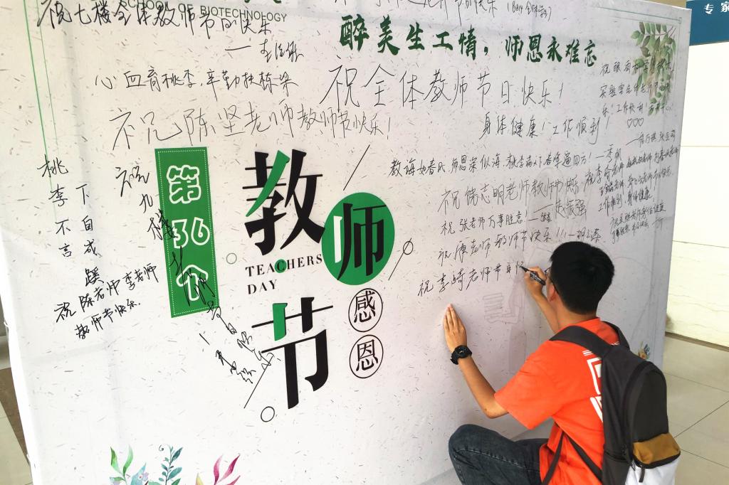 父母之外,便是师长。千言万语,唯剩感恩。上午,“醉美生工情,师恩永难忘”寄语祝福恩师活动在生工楼大厅成功举办。生工学子纷纷在展板上留下对老师的亲切祝愿,学生还精心为老师准备了节日祝福贺卡,真挚温暖的师生情洋溢在学院大厅。