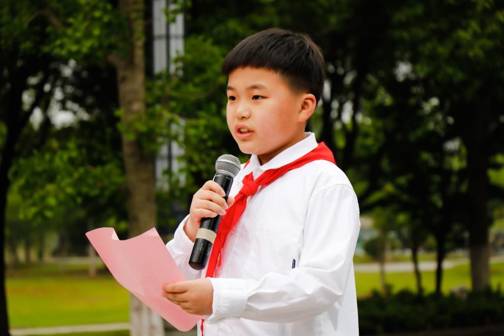 随后,在飘扬的五星红旗之下,小学生代表刘融进行了“我爱我的祖国”的主题演讲,诉说对富饶美丽、文化绵长的祖国的眷恋,以及长大后报效祖国的远大志向。在场师生共同合唱《少先队队歌》《歌唱祖国》,在雄壮有力的歌声中,坚定爱国奋斗信念。