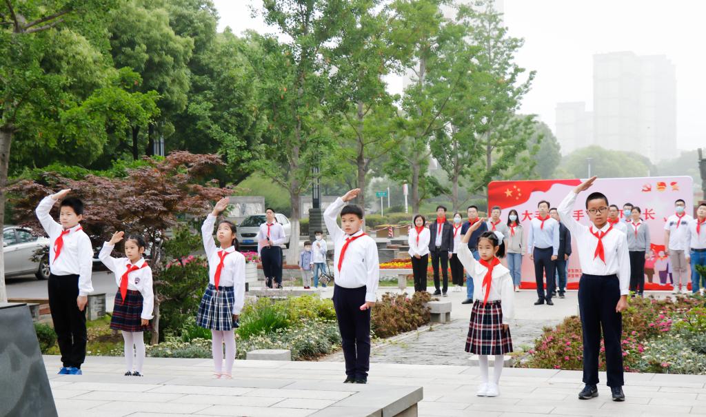 清晨7点活动正式开始,首先,来自省锡中实验学校第二小学的刘融、育英融创小学的鲍吴烨和唐楚奕,无锡惠山金桥实验学校的聂泽熙、无锡育红小学的马秉义以及锡师附小新城小学的钮崇梽等六位小学生为嘉宾敬献红领巾,并与91热爆