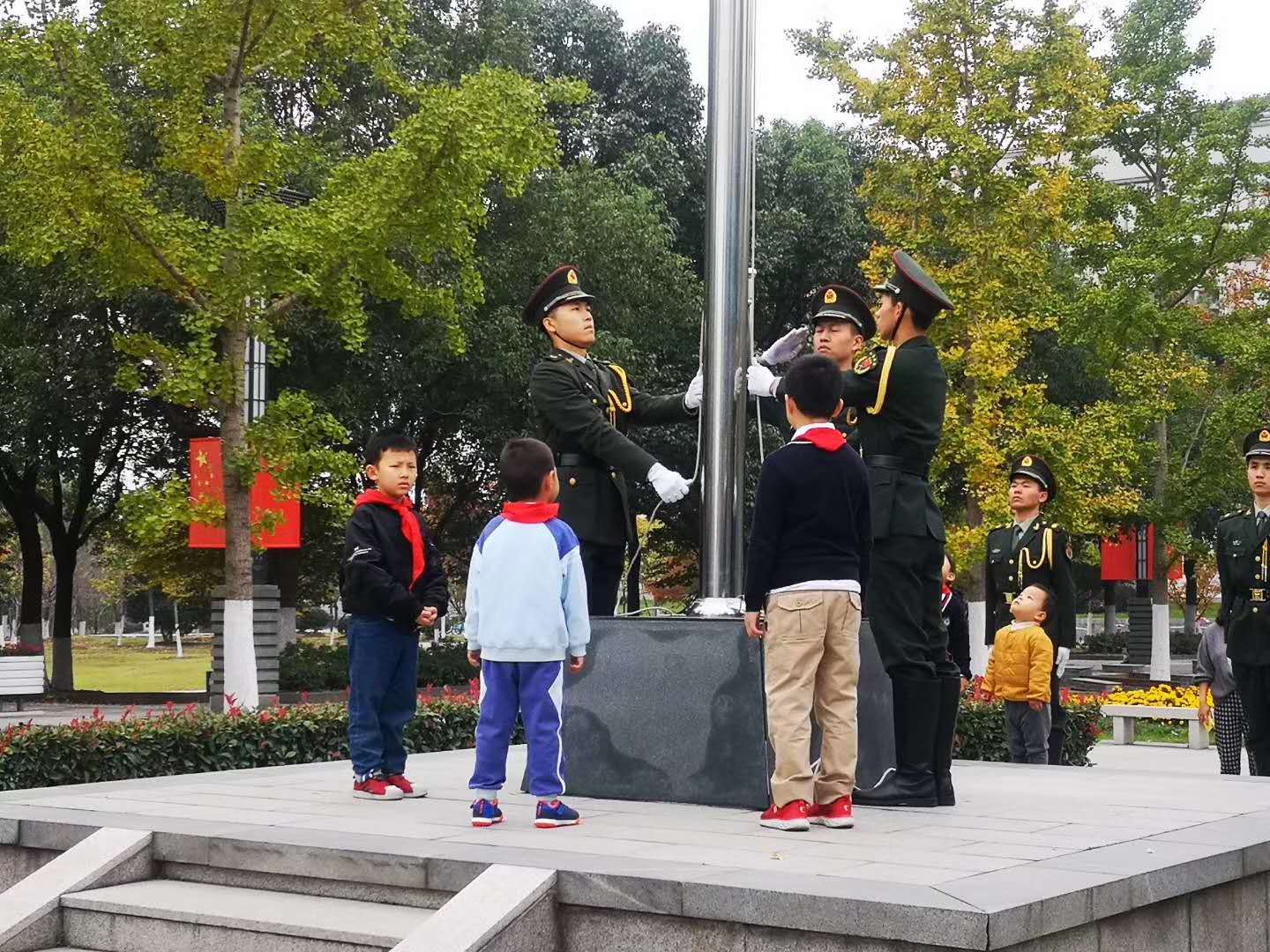 7点30许,伴随着《中国少年先锋队队歌》活动正式开始,五位小朋友给家长们敬献红领巾。随后,在国旗班同学带领下,小朋友们组成护旗方阵,迈着整齐的步伐来到升旗台。在激昂的国歌声中,小学生升旗手与国旗班大学生升旗手共同将五星红旗升至旗杆顶端,鲜艳的五星红旗迎风飘扬。