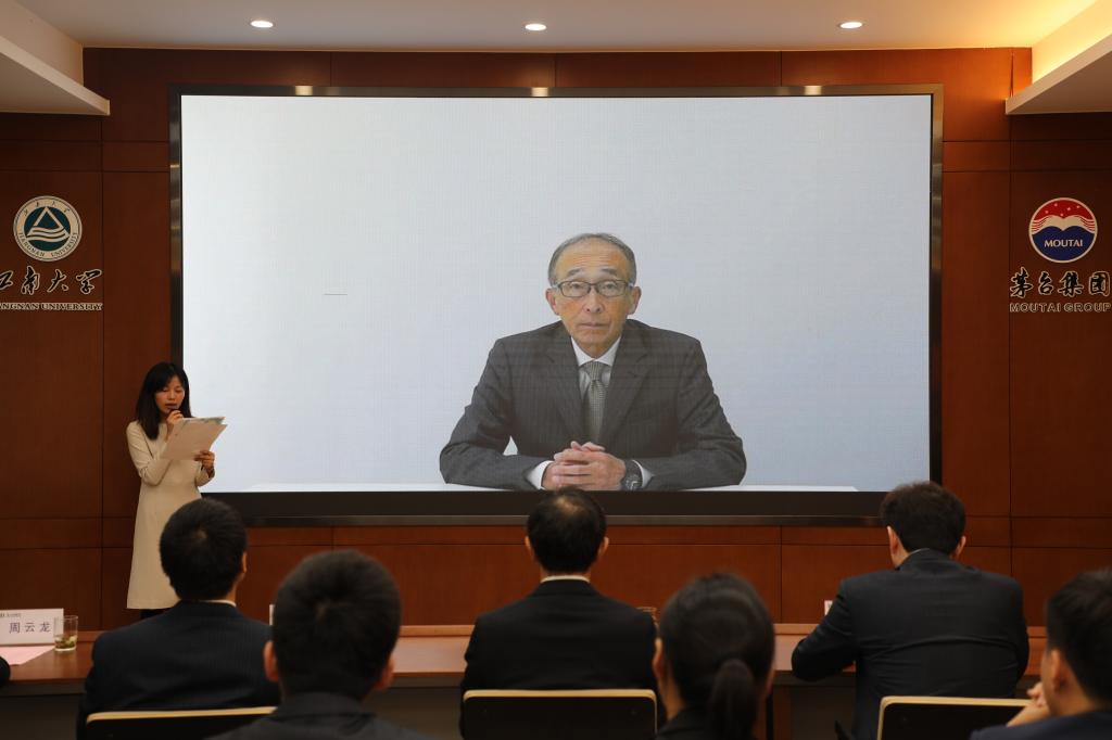 由于疫情防控工作要求,本次颁奖典礼采用线上连线方式进行。天野源之先生在线上致辞中对陈坚院士和陈卫校长的诸多支持表示感谢,他介绍了公司发展概况,天野奖学金设立的渊源和初衷,阐述了他祖父与中国以及与我院优秀校友张启先的故事,勉励在场学子要回馈社会,希望能够为中日友好贡献一些力量。