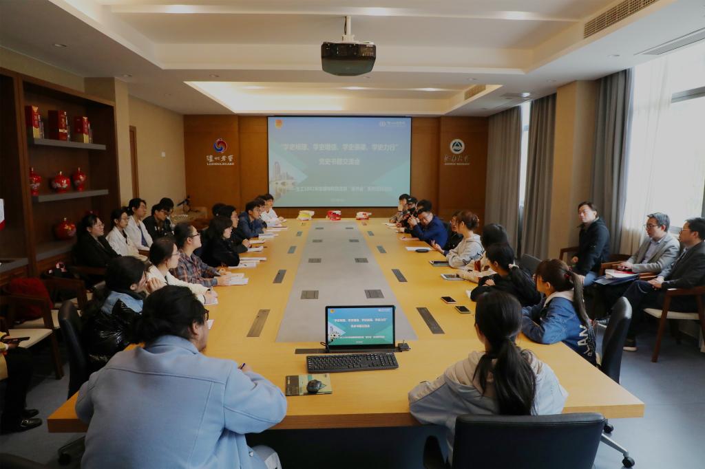 校长陈卫参加生工学院生工1802朱宝镛特称团支部“读书会”团日活动——“学史明理、学史增信、学史崇德、学史力行”党史学习交流会。生工学院党委书记王维、生工1802班班主任刘立明以及生工学院党委副书记、副院长周云龙等参与了活动。