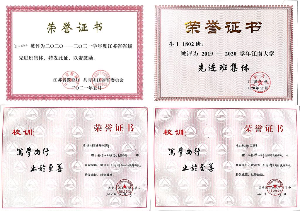 “先进班集体标兵”、江苏省“先进班集体”荣誉称号。