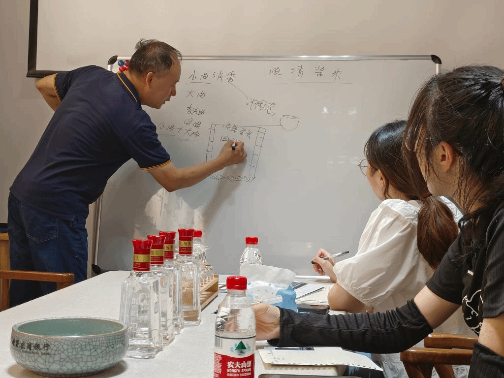 为深入了解同山烧白酒的一线酿造环境与工艺,学习同山烧背后的酒文化和故事,实践团队来到了浙江同山醉美人酒业。醉美人酒业创办人谢小义先生十分热情地向队员们介绍了同山烧的风味特色、酿造工艺以及与传统工艺相比的改良之处,例如由原有的小曲清香型向混曲的方向发展。谢小义先生还拿出了获得国际金奖的产品“勾践王”教大家如何品酒和鉴酒。队员们也询问了醉美人酒业的主要生产方式、销售道路、后续规划,与企业代表进行了热烈的探讨并结合专业知识提出了扩大销售路径等建议。