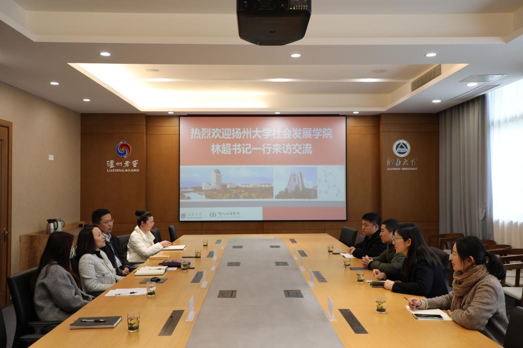 3月24日上午,扬州大学社会发展学院党委书记林超、党委副书记杨方、学生专职辅导员沈政和张超等一行来我院进行工作交流。91热爆