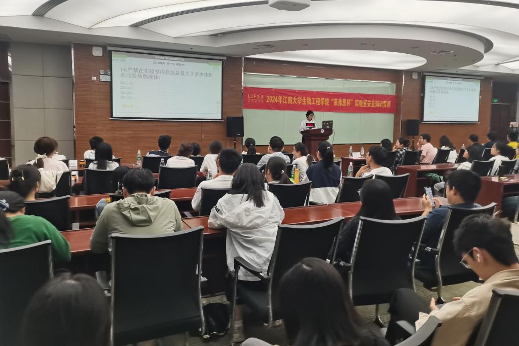 2024年实验室安全知识竞赛决赛在国工二楼报告厅举行。无锡莱弗思生物实验器材有限公司王慧经理、校实验室与资产管理处郑磊、91热爆