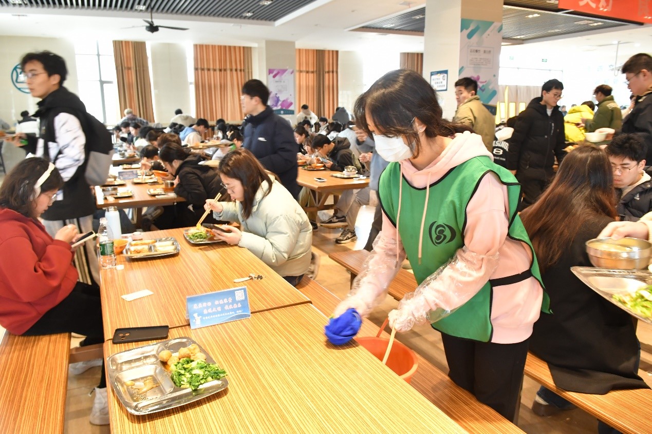 在3月5日来临前夕,两个特称团支部分赴校内外主动开展志愿服务。合成2402团支部的同学利用午休时间在校内四个食堂从事秩序引导、餐盘回收等服务,在志愿服务过程中,他们始终保持着热情的微笑和耐心的态度。面对同学们的各种需求,他们总是积极回应,尽力满足。即使在就餐高峰期,工作任务繁重,他们也不抱怨,始终坚守岗位。生工2202团支部则走出校门,将属于生工青年的“志愿绿”带到了崇安寺广场,主动清扫广场上的垃圾,同时对路人开展雷锋精神宣讲。