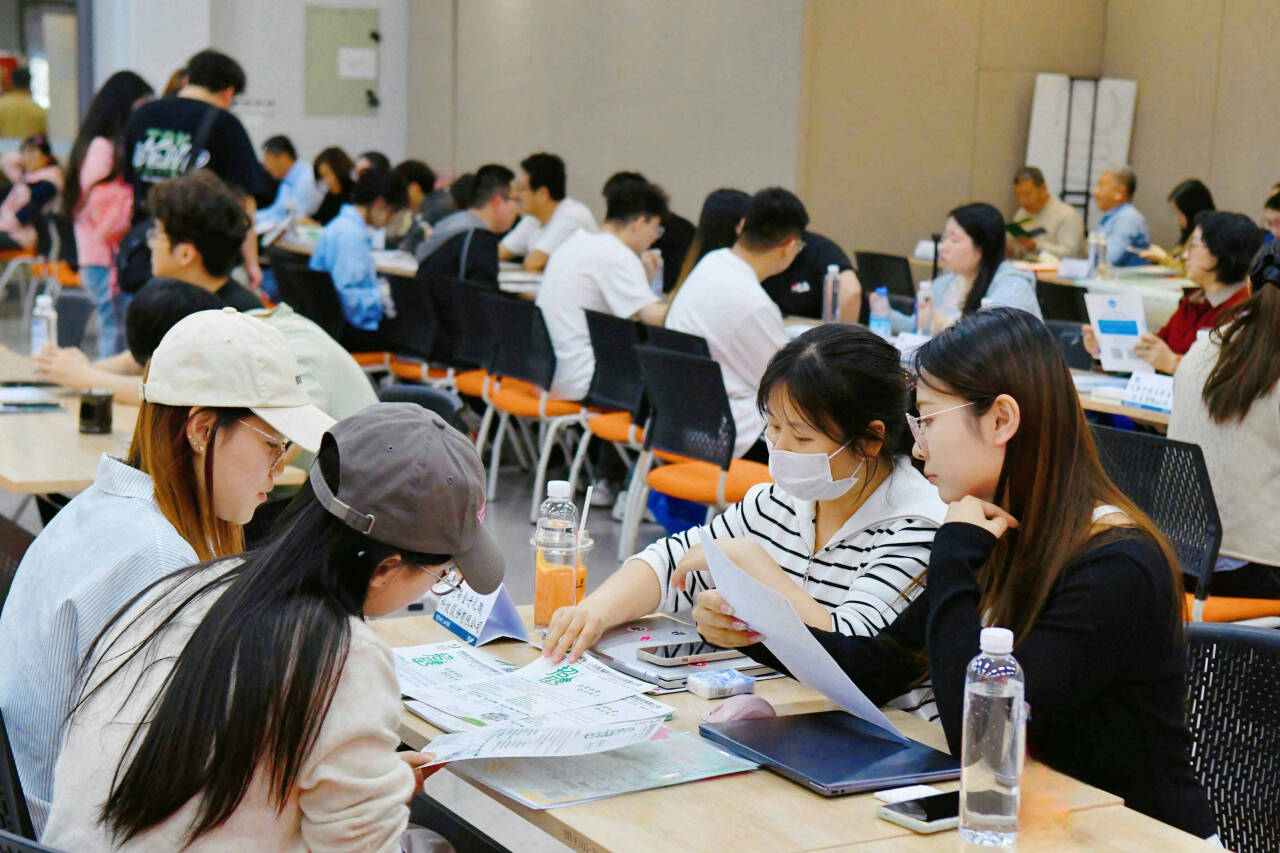 招聘会现场气氛热烈,学院2025届毕业求职学生纷纷来到现场,向意向单位投递简历,就公司概况、薪资水平、发展前景等与用人单位进行了详细交流,部分企业还进行了现场面试,和学生初步达成签约意向。