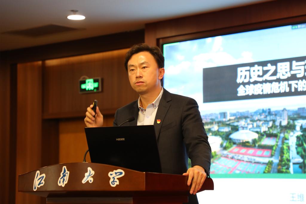 “反腐,托住的是我们中国共产党执政为民的底线;脱贫,托住的是我们社会主义中国的底线;强军,托住的是一个现代化国家安全的底线。”学院党委书记王维老师为本科新生带来了一场题为《历史之思与现实之遇——全球疫情危机下的大国责任担当》的生动党课,也是新同学的“开学第一课”。他以“自由与秩序的辩证之思”为引子,从马克思主义唯物主义辩证法和历史唯物主义的角度,围绕当今世界种种,对修昔底德陷阱、中等收入陷阱和塔西佗陷阱进行了深刻解析,希望同学们能够正确认知世界形势、国家使命和青春梦想。