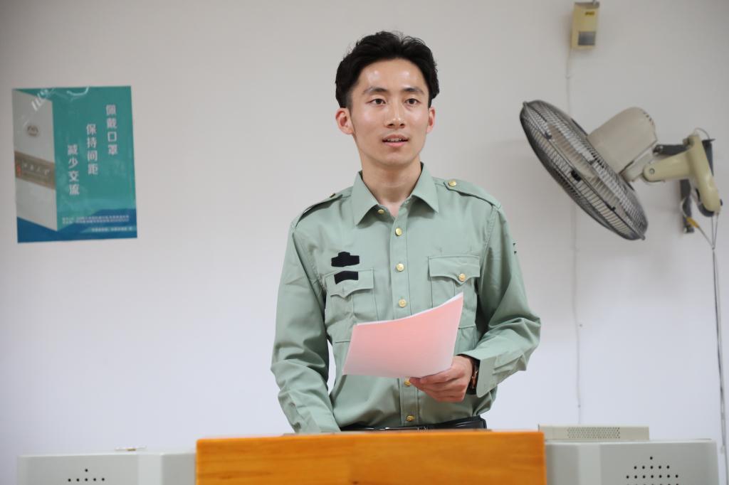大会开始,服役两年后退伍的段凯同学与新生们进行了经验分享,介绍了入伍原因及政策,同时用幽默风趣的语言讲述了部队生活的有趣之处,让同学们了解到他艰苦却有意义的军队生活。之后,段凯与同学们进行了交流互动,回答同学们对军训的疑惑,并为即将军训的20级学生提供了军训建议,同学们都表示受益匪浅并回以段凯学长热烈掌声。