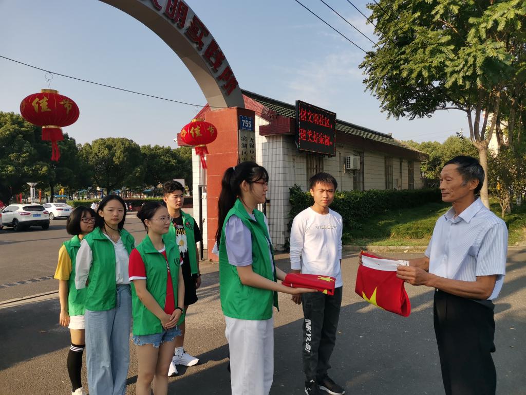 国旗班的一员,这次他带领本专业同学来到雪浪街道服务中心,向其赠送崭新的国旗,并举行了庄重的升旗仪式,看到迎风飘扬的五星红旗,同学们心潮澎湃。经过同学们的努力,8支队伍一共为10家单位更换了11面国旗,大家以独特的方式为祖国庆生,祝福伟大祖国更加繁荣富强。