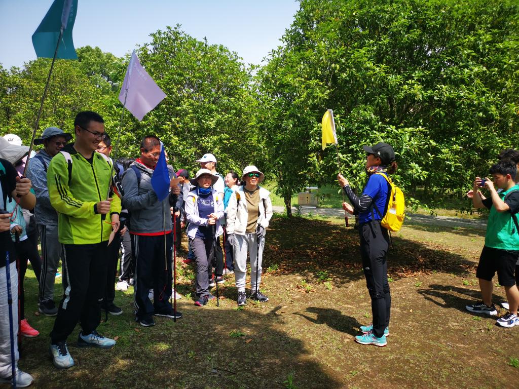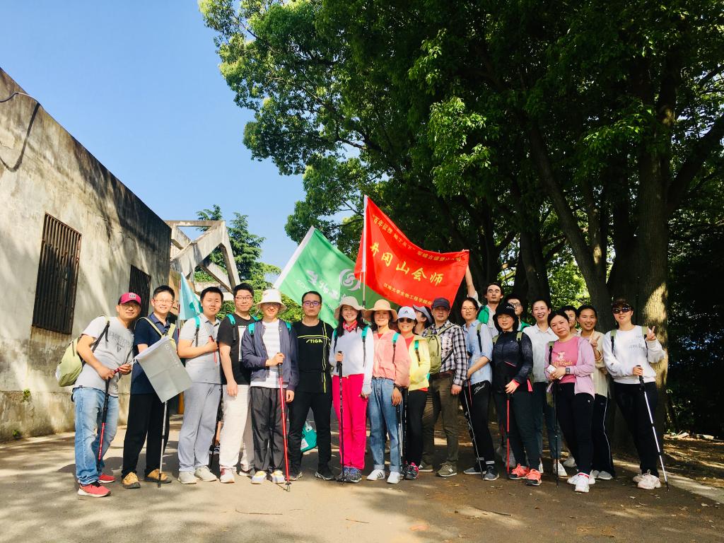 分工会委员郑飞云老师进行了热情洋溢的活动介绍,他希望参与人员发扬勇于挑战、团队协作的精神,通过户外运动得到身体上的锻炼、精神上的愉悦和意志上的历练。分工会委员周楠迪老师介绍了此次登山活动的比赛规则和安全提示,并强调了做好环保工作。方芳老师向大家介绍了登山杖的使用方法以及注意事项。随后,8支队伍在队长的带领下取好队名和口号,分工会副主席徐静老师为各队队长授旗,一声令下各队依次向山顶进发。