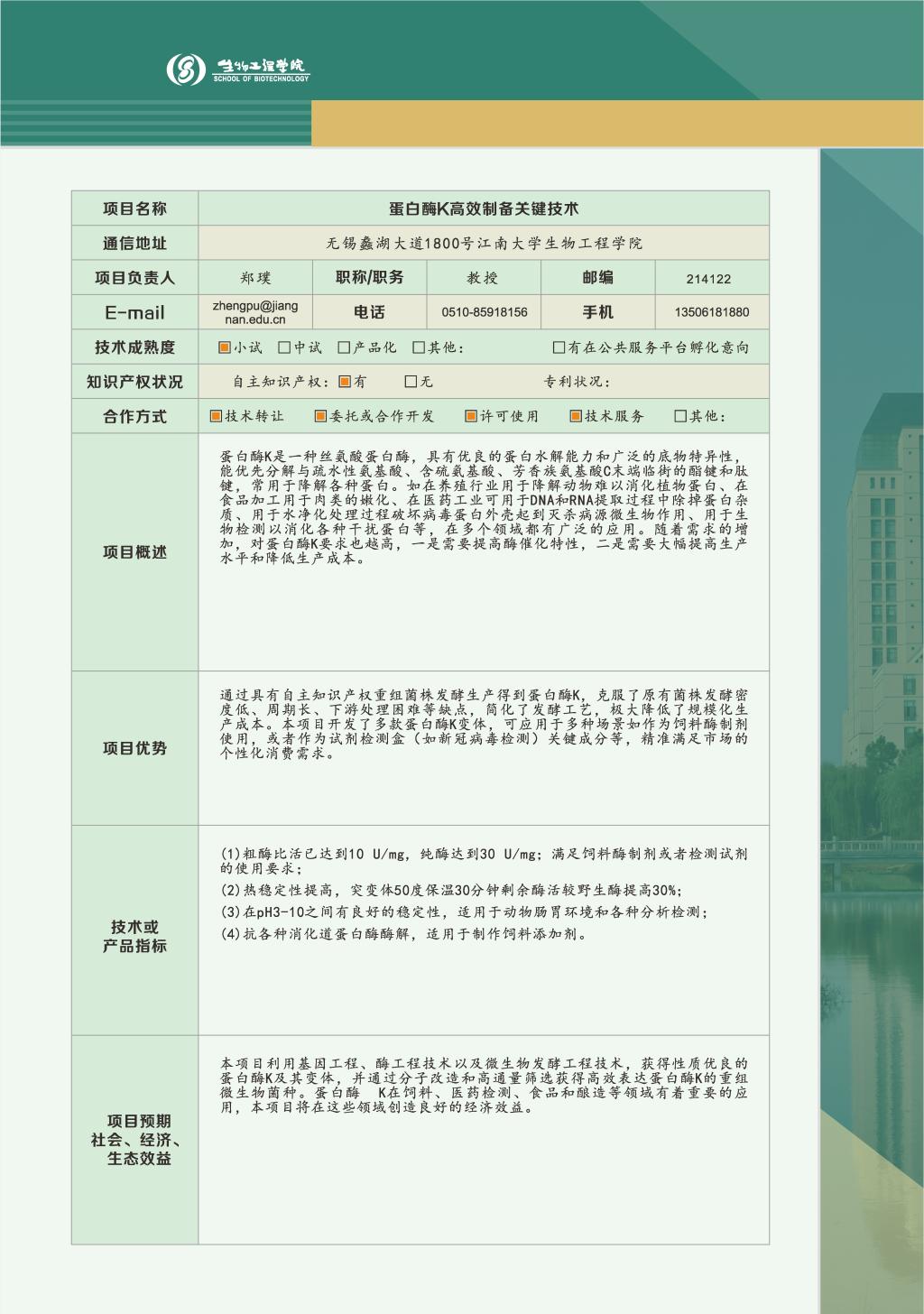 工业生物技术教育部重点实验室
