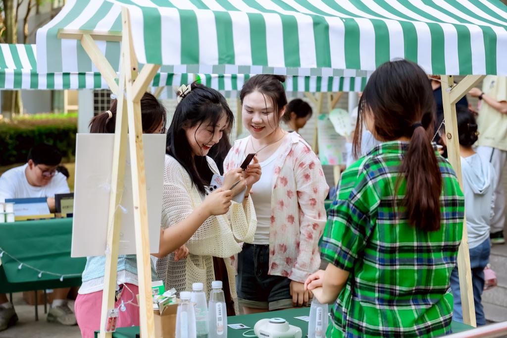音乐会前的“满怀生情”毕业创意集市热闹非凡,展板留言写下真挚祝福,拍立得打卡记录醉美的青春笑脸,漆扇制作绘就独一无二的毕业纪念、甜品茶饮惊喜不断……