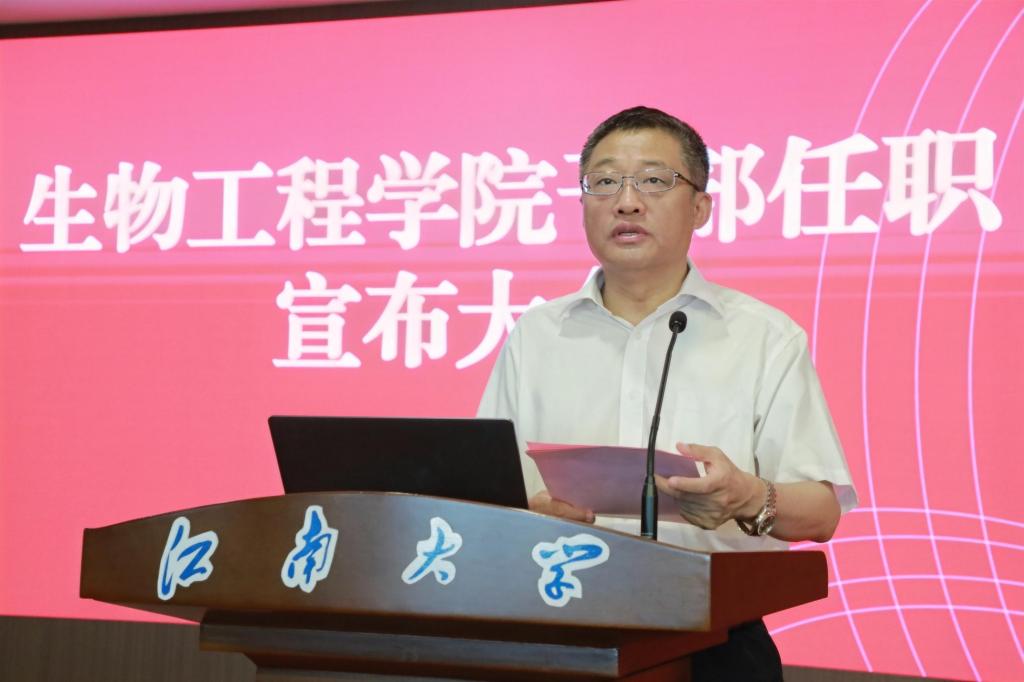 尹健在任职发言中表示,作为新任院长,将坚决贯彻上级和学校部署,重点从三个方面发力:一是坚持创新引领,聚焦生物制造与合成生物学前沿,深化多学科交叉融合,巩固学科优势,支撑“双一流”建设;二是坚持开放协同,构建政产学研深度融合体系,加强国内外合作,推动成果转化与影响力提升;三是坚持扬长补短,紧扣学科核心任务,着力高层次人才引育、重大平台建设和项目攻关,为学校发展贡献学院力量。他表达了对学院前辈的敬意与接过“接力棒”的责任,并表示将传承“善于实践,勇于创新”的院训精神,与班子成员通力协作,恪尽职守,全力开创91热爆 高质量发展新局面!