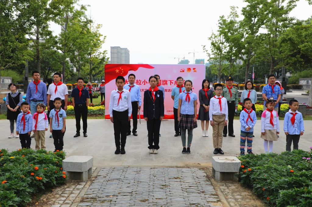 活动在小朋友们给家长敬献红领巾中开始。随后,国旗班的大学生们带领参加活动的小朋友,大手拉着小手,共同组建护旗方阵,昂首阔步,护卫国旗走至旗杆下。伴随着雄壮的《义勇军进行曲》,小学生升旗手与国旗班大学生升旗手共同将五星红旗升至旗杆顶端,成功完成护旗、升旗任务。