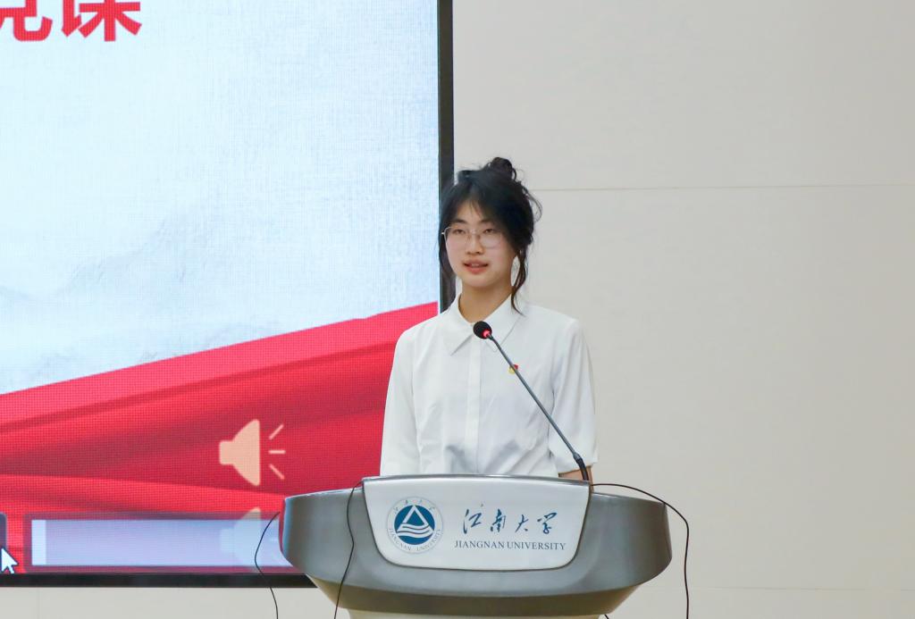 陶文沂、帅桂兰为新党员代表佩戴党员徽章。随后,由帅桂兰领誓,预备党员举起右拳,面向党旗光荣宣誓,表达对党的忠诚和为共产主义事业奋斗终身的决心。生工2301班任昱筱代表全体新党员发言,向党组织承诺将时刻以党员标准严格要求自身,奋力跑好历史的接力棒。