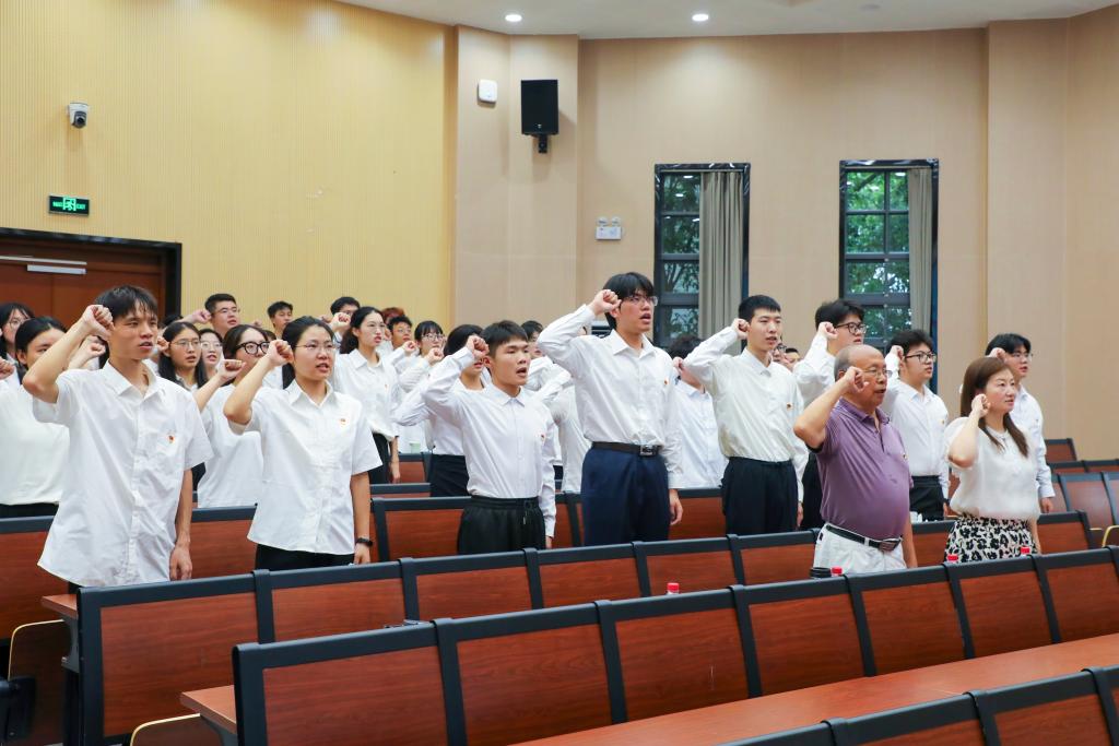 活动在庄严的《国际歌》中拉开帷幕。林丹宣读学院党委关于接收中共预备党员的审批意见,希望新党员以入党宣誓为新起点,以更加饱满的热情、更加昂扬的斗志,书写青春奋进新征途。